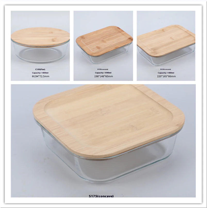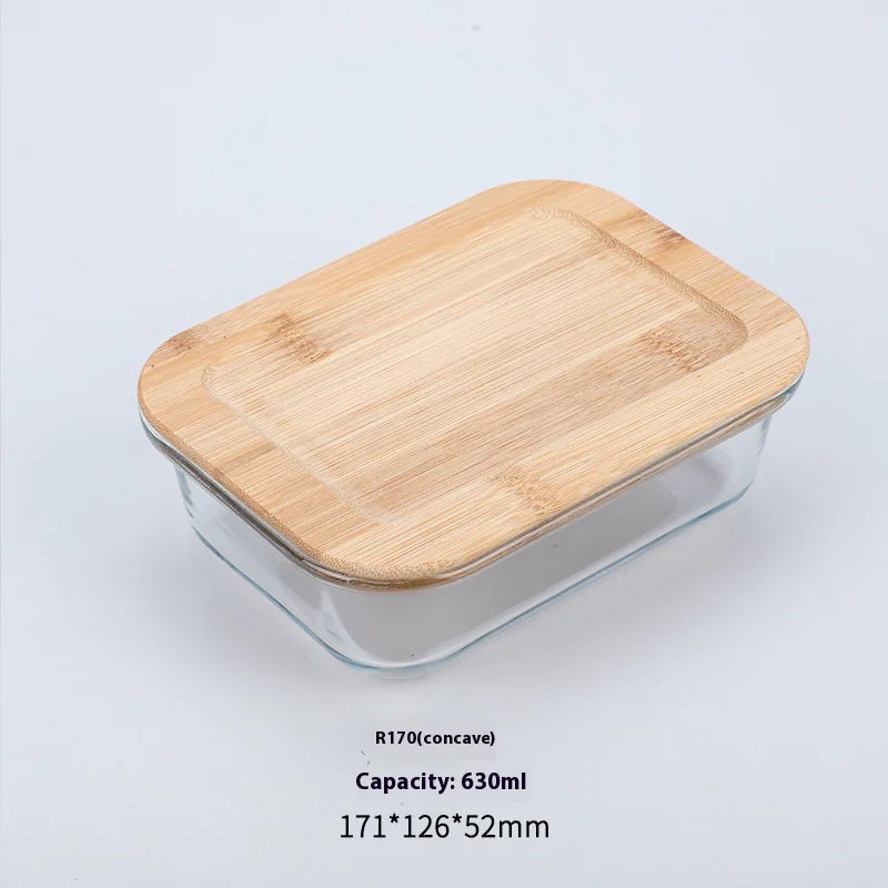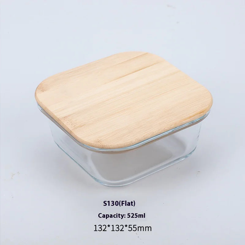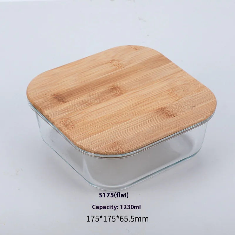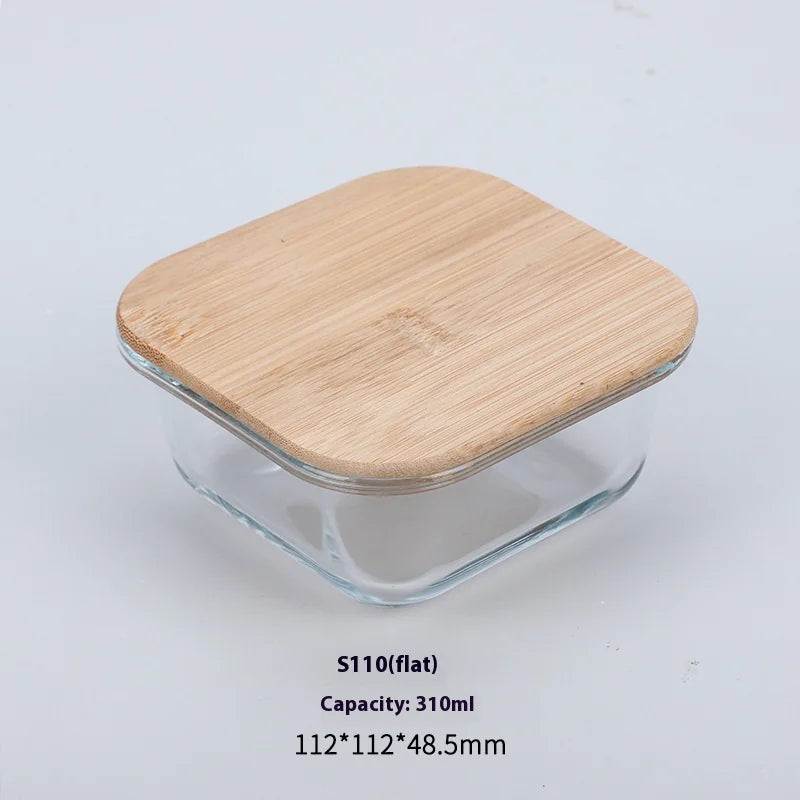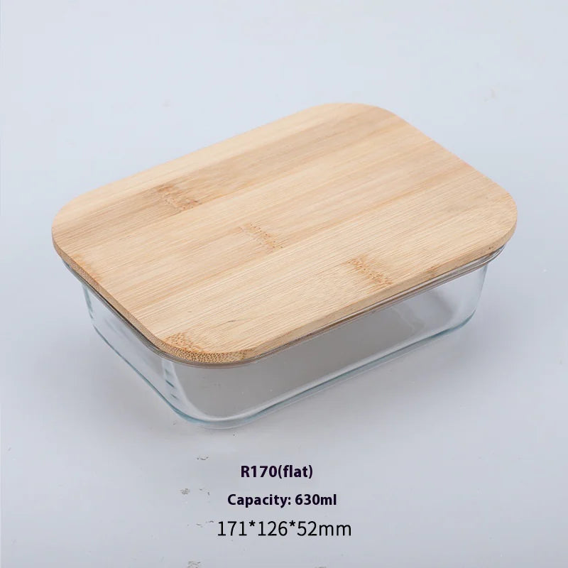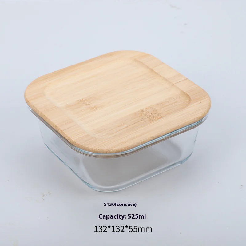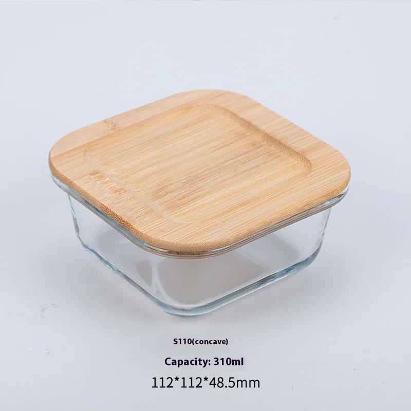 Silicon Glass Lunch Box with Bamboo Wood Lid