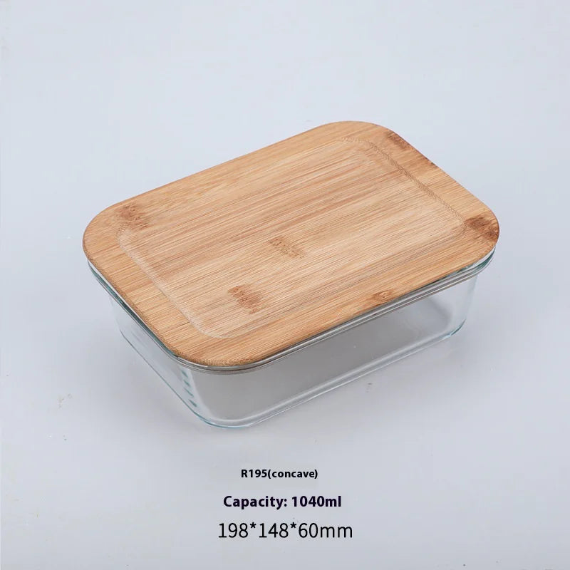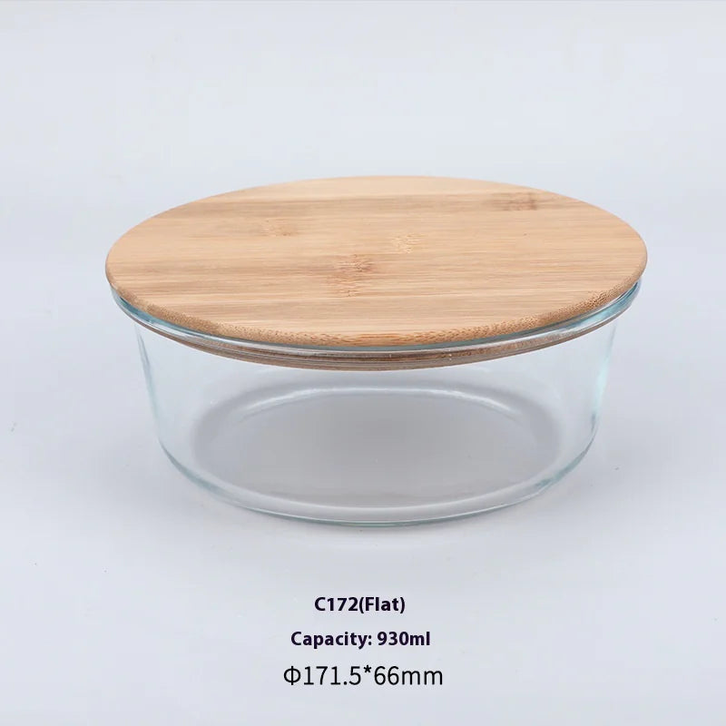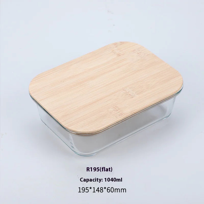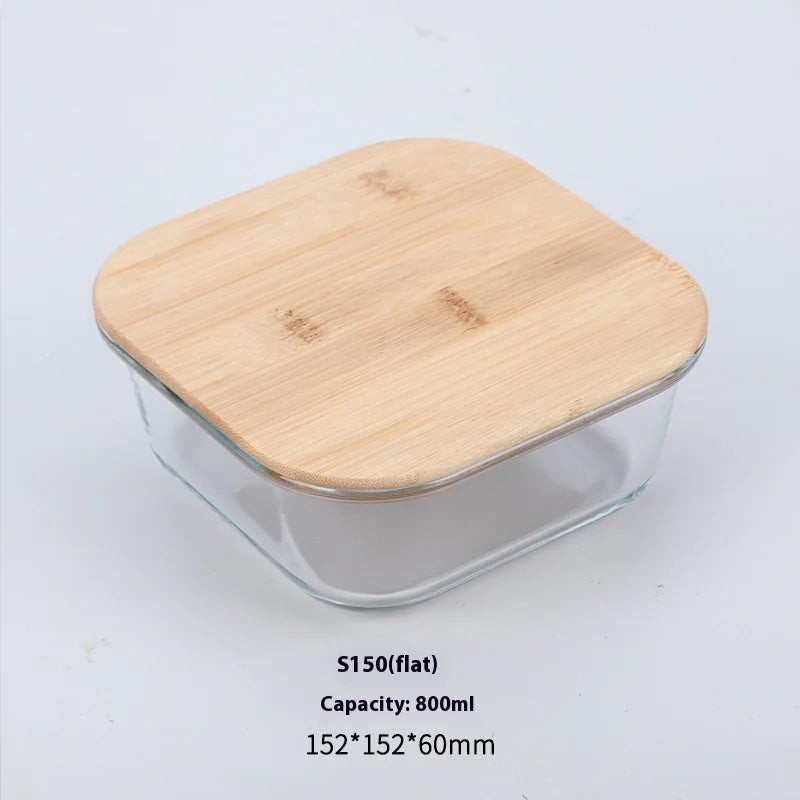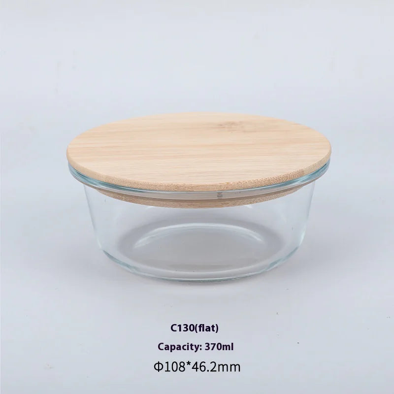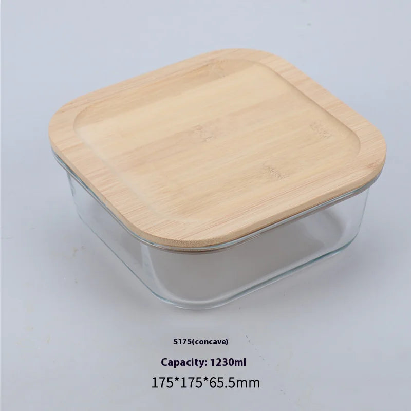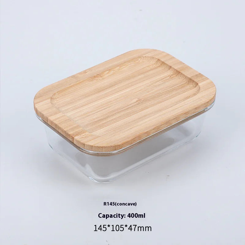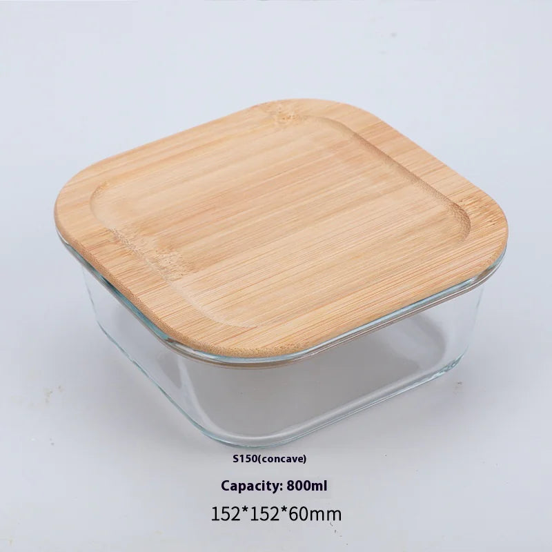 Silicon Glass Lunch Box with Bamboo Wood Lid