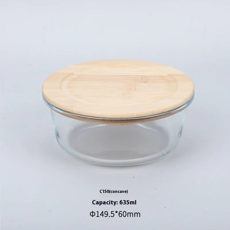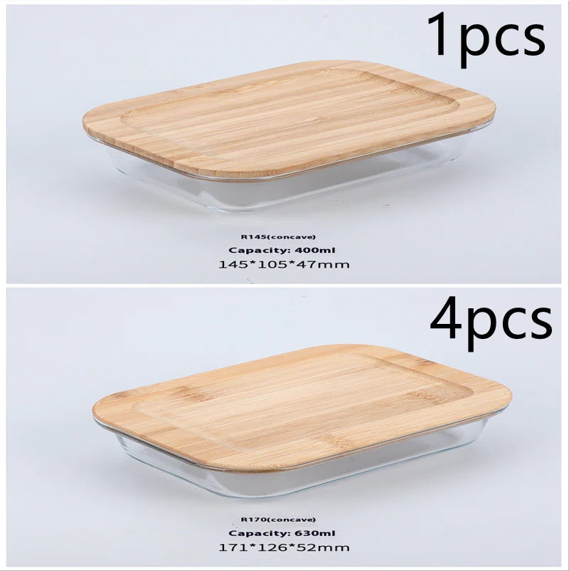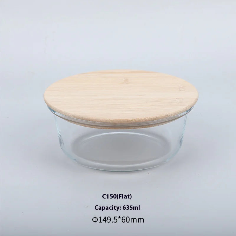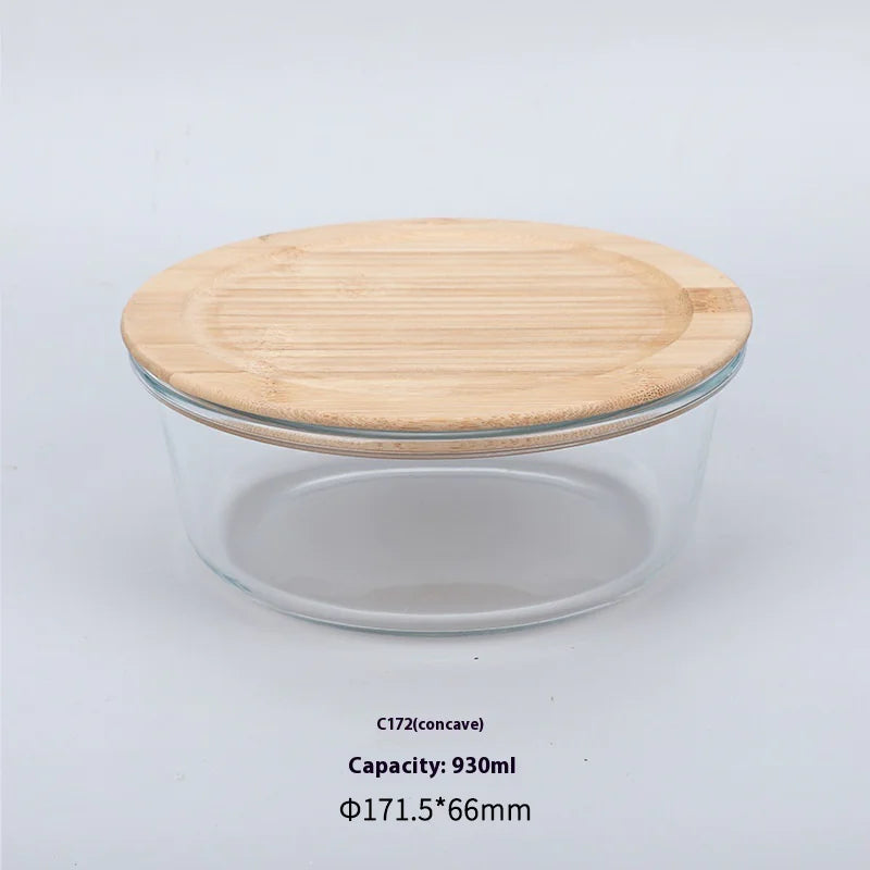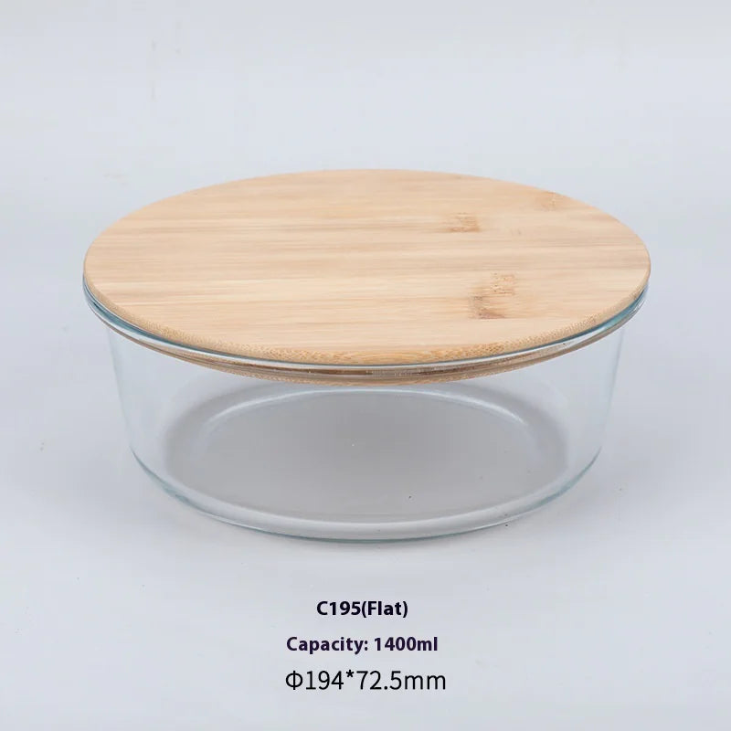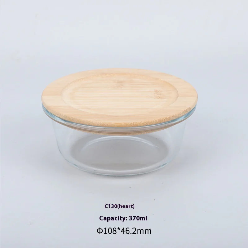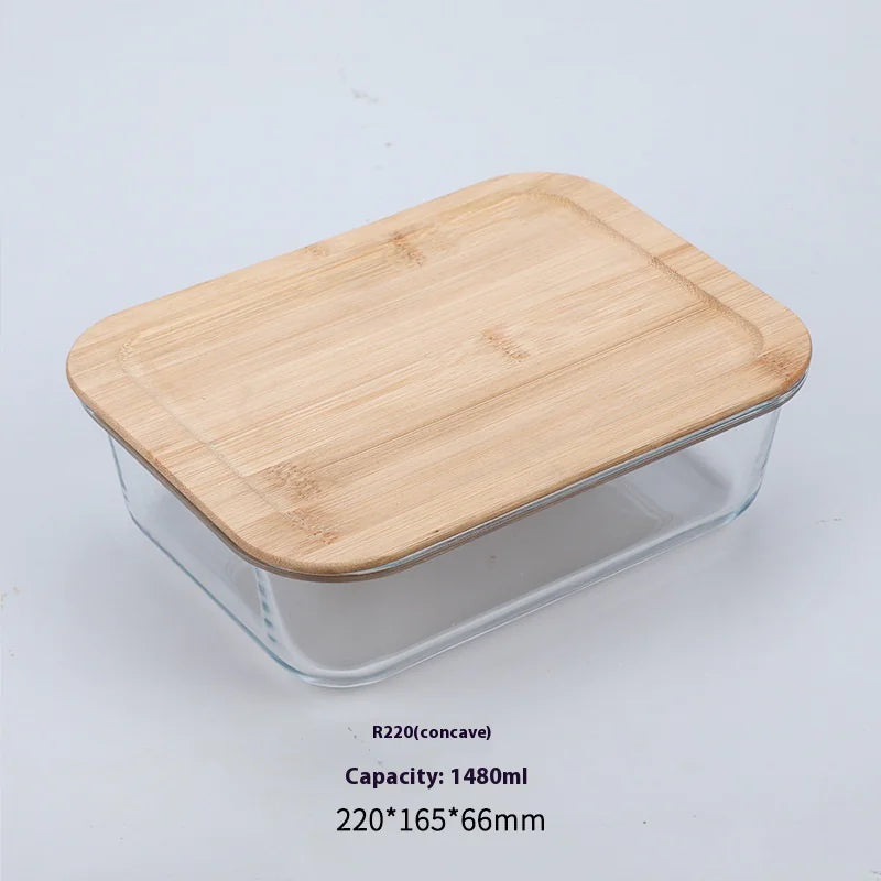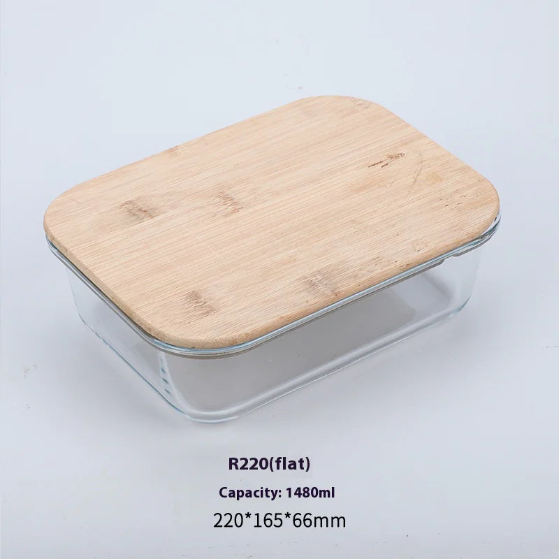 Silicon Glass Lunch Box with Bamboo Wood Lid